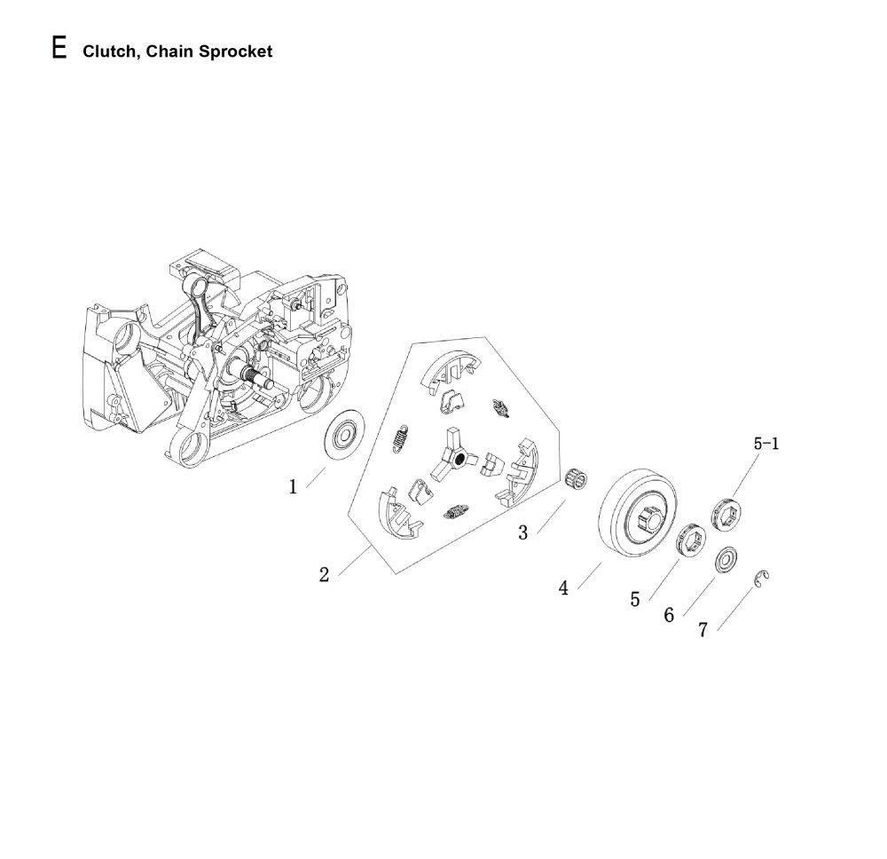 E. Clutch, Chain Sprocket K9 Recoil Spring Cover