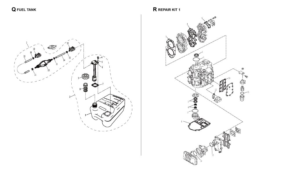 Q1 Fuel Line Assy Q9 Body, Fuel Tank
